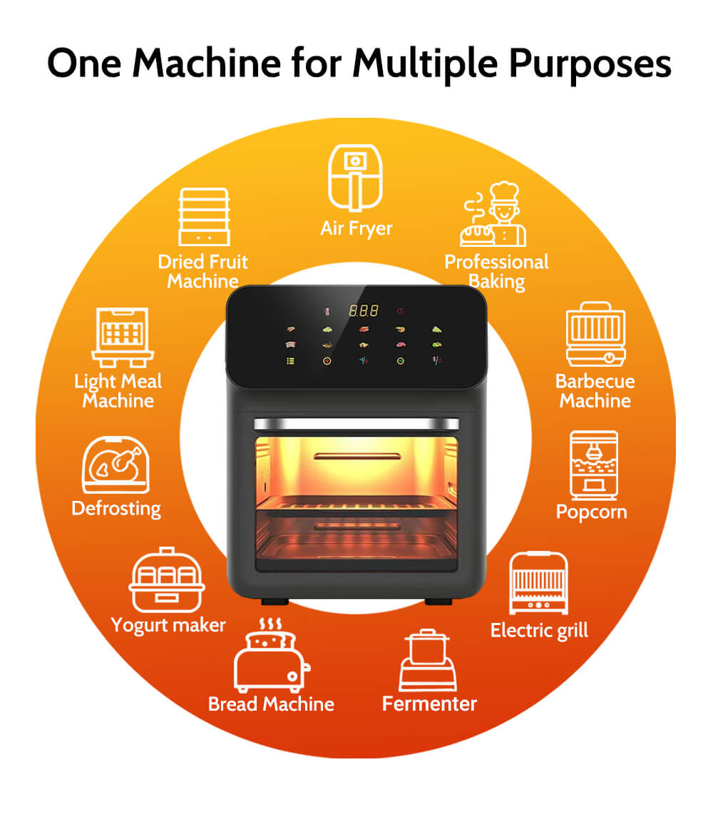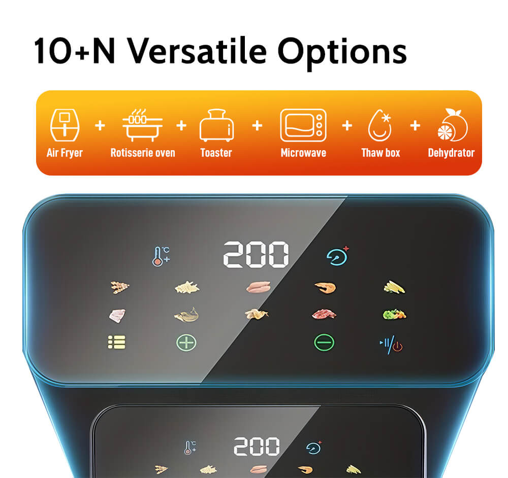 • Crispier, Healthier Food: 1850W power and 360° heat circulation for evenly cooked, crispy results with less oil.