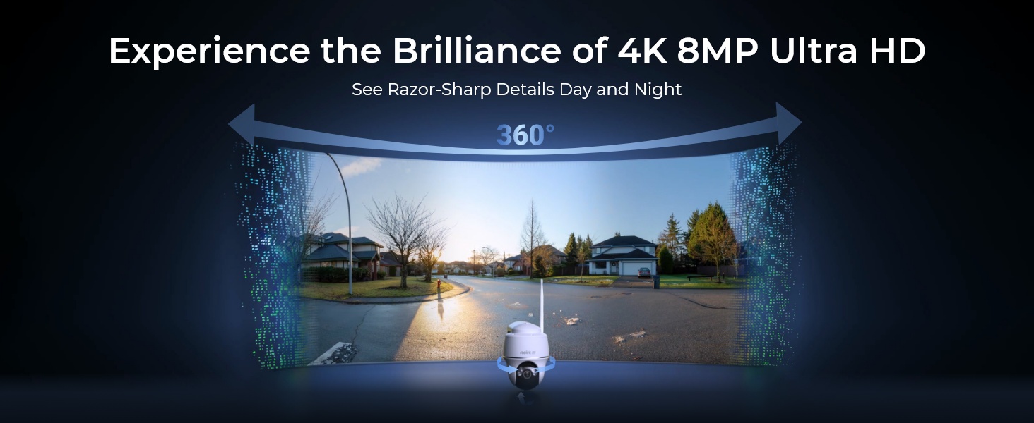 • 4K 8MP Color Vision Day & Night: The battery security camera is upgraded to 4K 8MP ultra-high definition, providing unparalled visual experience for you. The built-in motion spotlight helps you see every important color detail even at night.