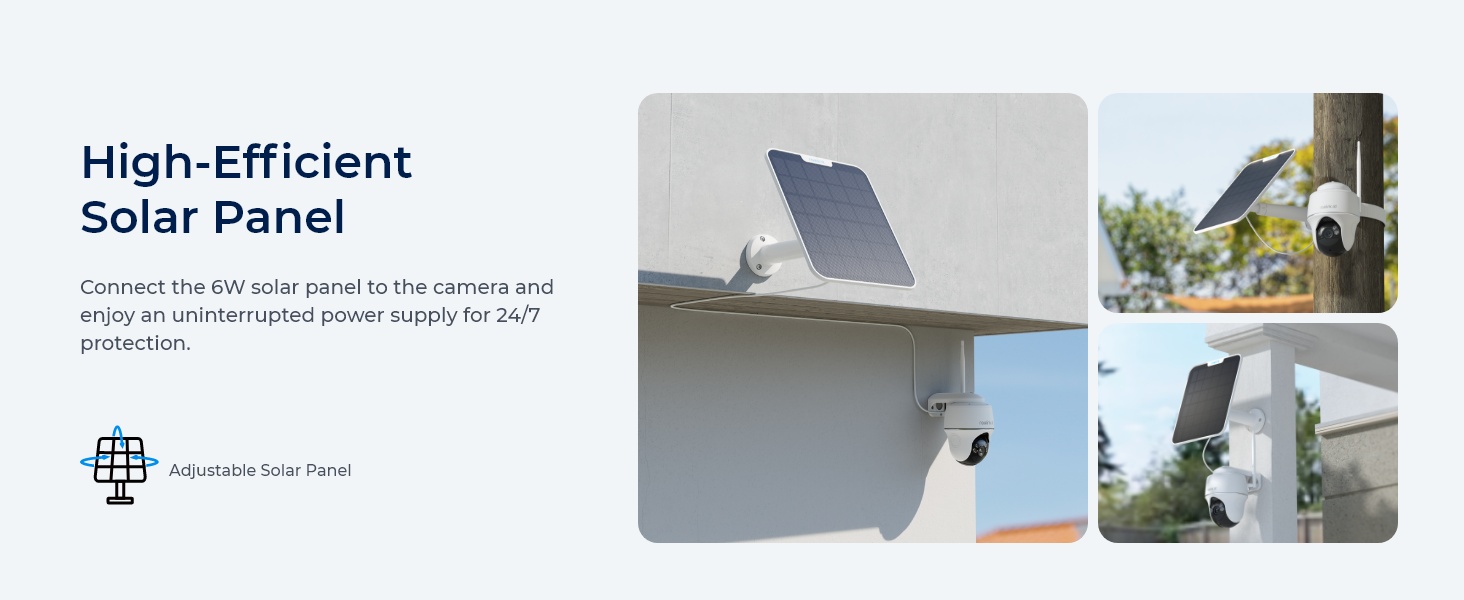 • 100% Wire-Free Easy Setup: The camera works on 2.4/5GHz WiFi and continuously powered by the new 6W solar panel, freeing you from frequent battery charging hassles. With this easy-to-install wireless camera, you can build up your independent security system within minutes.