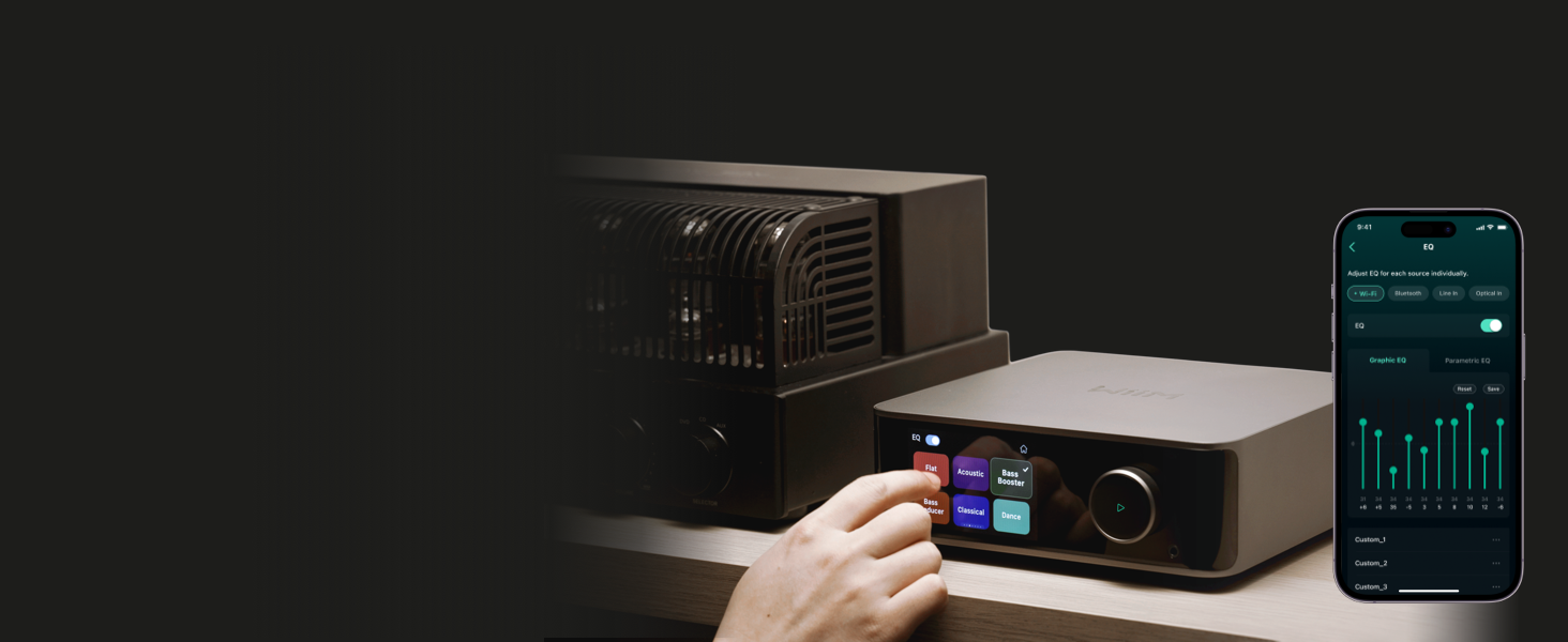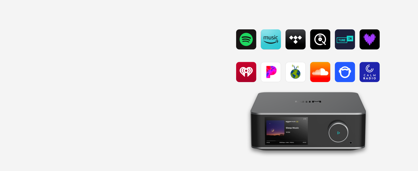 - Hi-Res Sound Shaped by You: Stream crystal-clear music up to 24-bit/192 kHz from platforms like Spotify, Amazon Music, TIDAL, Qobuz, or your own library. Enjoy gapless playback and superior sound quality. Personalize your audio with advanced room correction and independent EQ settings tailored to your space.
