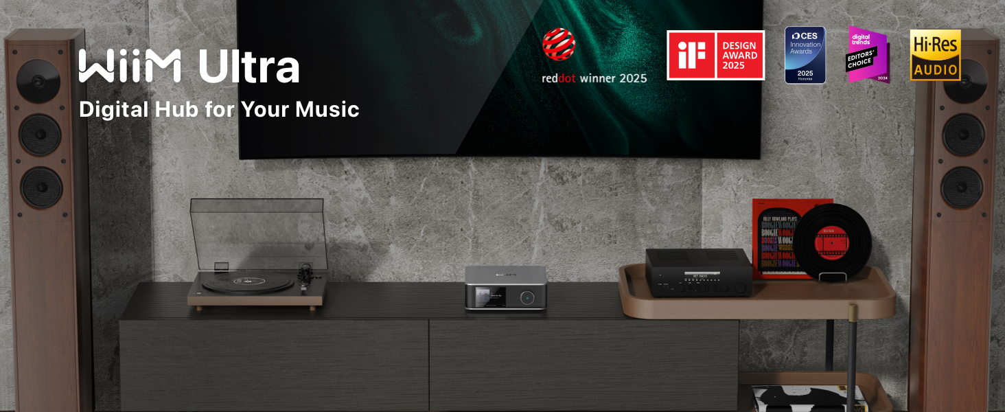 - Looks Good, Sounds Great: The WiiM Ultra redefines your audio experience with its sleek aluminum design and premium components. This all-in-one music streamer boasts a ESS ES9038 Q2M DAC, a vibrant 3.5” touchscreen, state-of-the-art Wi-Fi 6, and Bluetooth 5.3 connectivity. Engineered for excellence, it delivers outstanding audio clarity with a THD+N of -116dB and an SNR of 121dB, making it a perfect addition to any sound system.